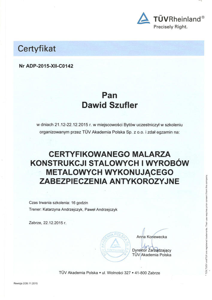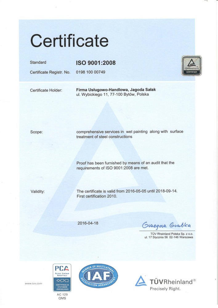 Od 2004 roku firma rozpoczęła działalność w zakresie zabezpieczeń antykorozyjnych konstrukcji stalowych.