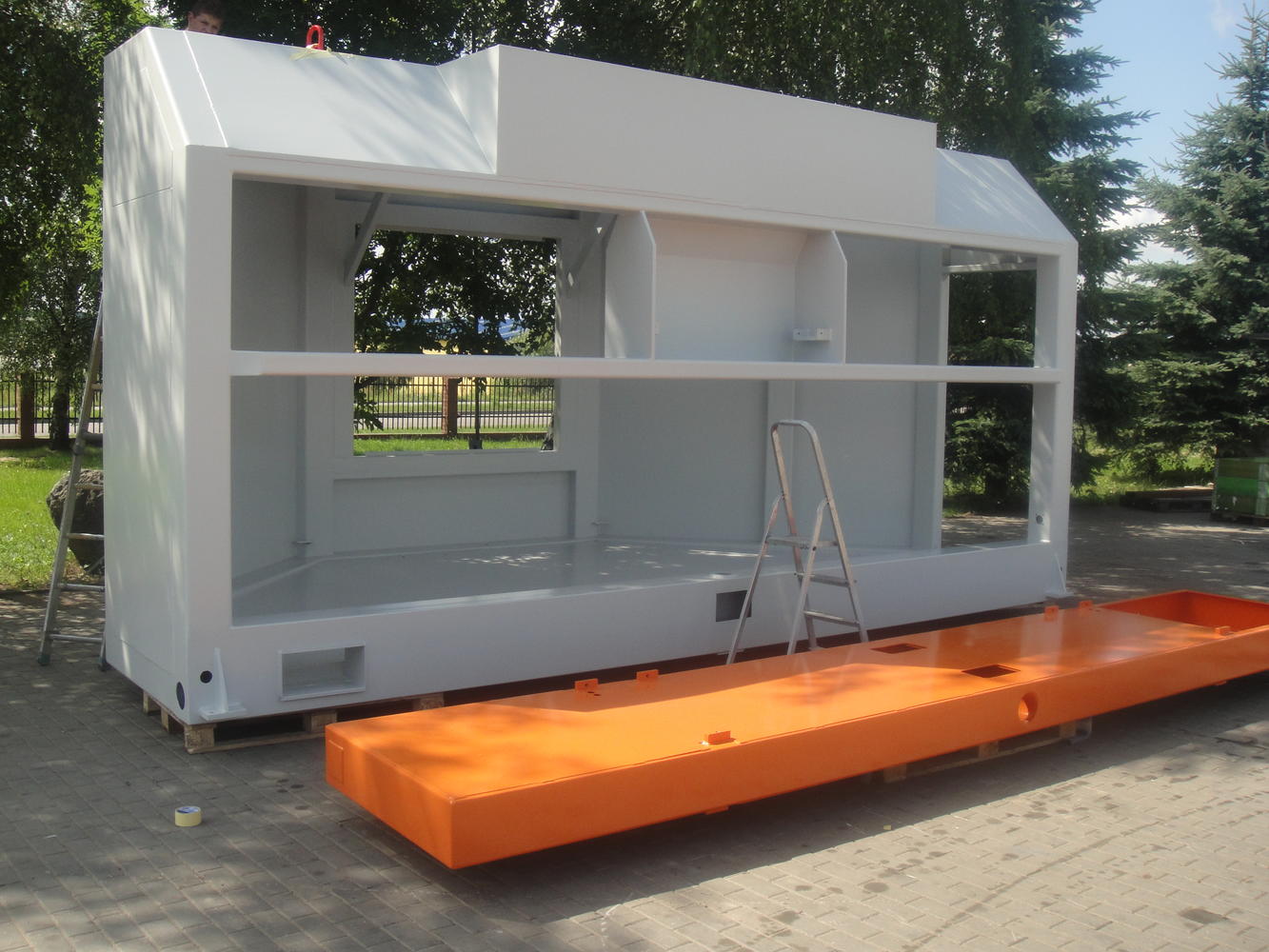 - kabina śrutownicza o wymiarach 5m szeroka x 12 m długa x 4 m wysoka.